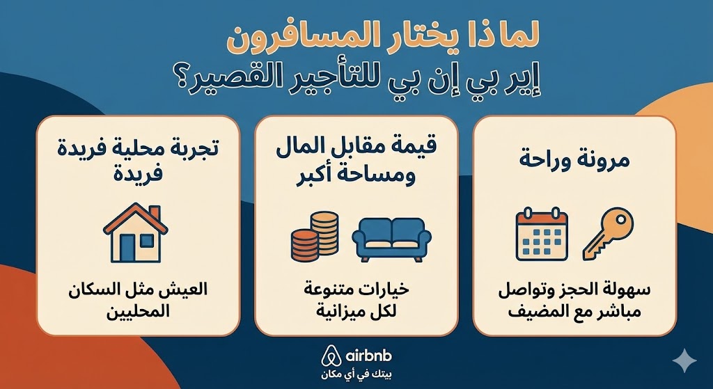 لهذه الأسباب، يستمر التأجير القصير عبر Airbnb في النمو ليصبح أحد أهم الخيارات للمسافرين حول العالم الذين يبحثون عن إقامة مريحة ومرنة خارج إطار الفنادق التقليدية.