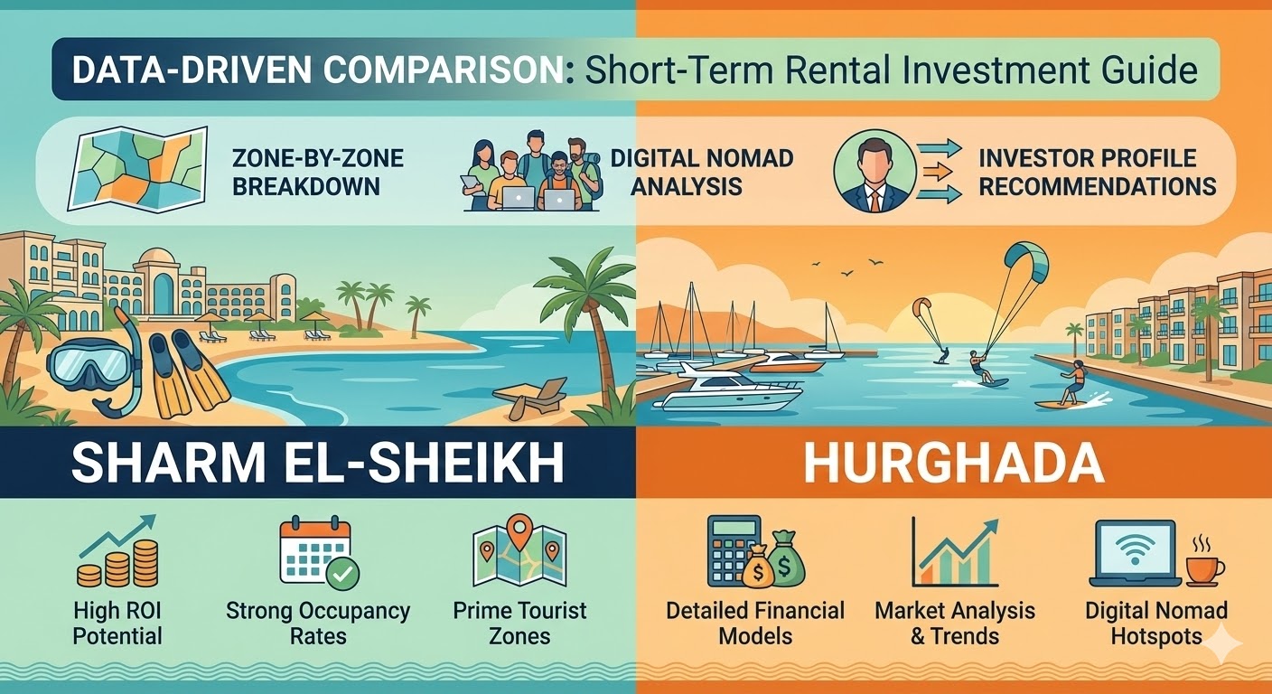 It is one of the most debated questions among Egyptian and Gulf property investors: Sharm el-Sheikh or Hurghada? Both are world-class beach destinations on Egypt's most coveted coastlines, both attract millions of international tourists annually, and both offer compelling short-term rental investment opportunities. But they are fundamentally different markets serving different audiences — and the right choice between them depends entirely on your investment goals, budget, risk tolerance, and target guest profile.